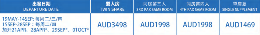 3.旺季(如國家節日、復活節、暑假、聖誕及新年),均需繳付節日附加費。