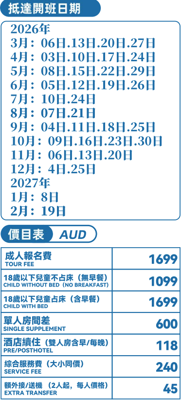 (團費已含西安-上海單程經濟艙機票含20KG行李)