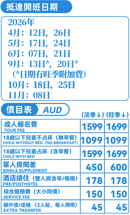 抵達機場或高鐵站,接機/接站後送回酒店休息。相鄰2小時內的航班/車次的客人,我們將統一安排車輛接送,接機/接站可能會有等待現象,敬請諒解!(酒店14:00後可辦理入住,具體接機/接站資訊和酒店詳情請見出團通知書)
