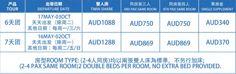 温馨提示:不同出发日期的团期在景点不变的情况下,行程顺序可能会有所调整,具体请以实际安排为准,感谢您的理解与支持!