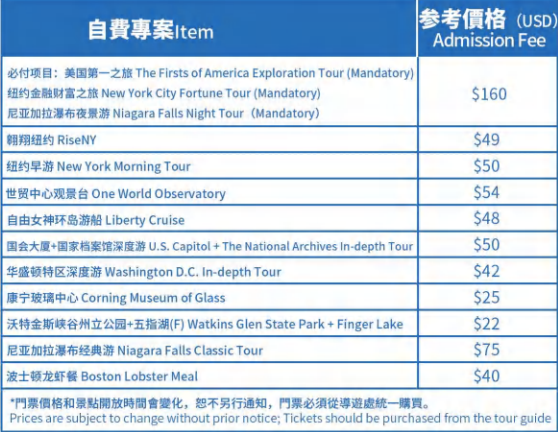 5.景點門票(必付項目和自費項目) MANDATORY AND OPTIONAL ADMISSION FEE