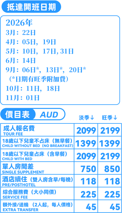抵達機場或高鐵站,接機/接站後送回酒店休息。相鄰2小時內的航班/車次的客人,我們將統一安排車輛接送,接機/接站可能會有等待現象,敬請諒解!(酒店14:00後可辦理入住,具體接機/接站資訊和酒店詳情請見出團通知書)