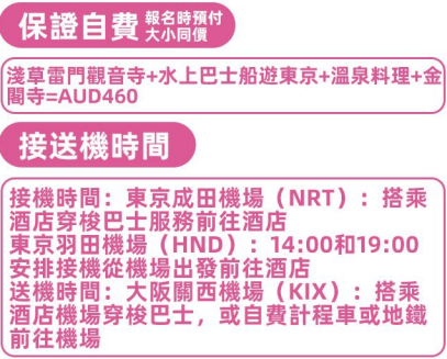 東京羽田機場(HND)統一安排14:00和19:00安排接機從機場出發前往酒店。