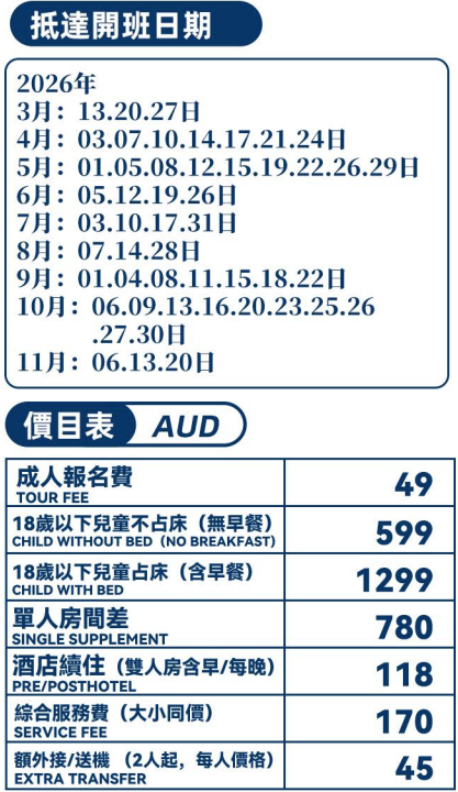 重要提示:遊船段行程僅供參考,季節性調整或 是氣候以及航道等因素的影響,每日行程可能會有所改變,具體行程以當日船公司安排行程為准,遊 船公司保留對行程的最終解釋權.