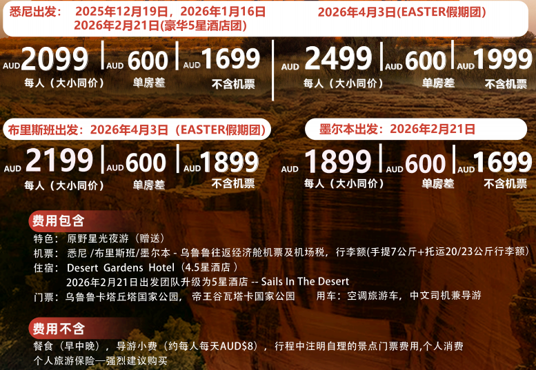 D4 乌鲁鲁 – 悉尼/墨尔本/布里斯班