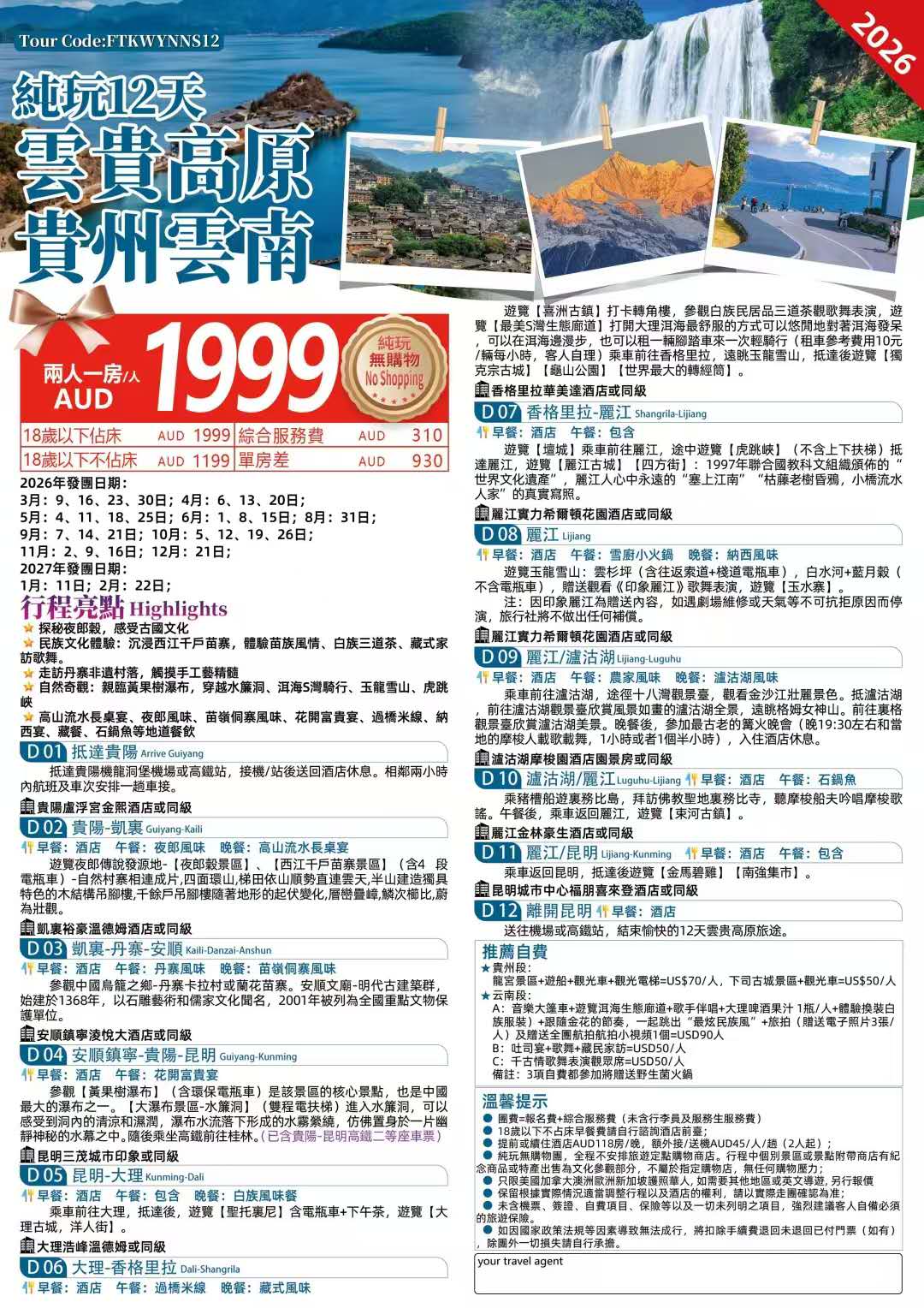 云贵高原贵州云南12天游