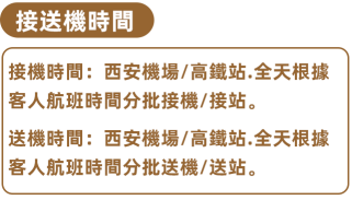 抵達機場或高鐵站,接機/接站後送回酒店休息。相鄰2小時內的航班/車次的客人,我們將統一安排車輛接送,接機/接站可能會有等待現象,敬請諒解!(酒店14:00後可辦理入住,具體接機/接站資訊和酒店詳情請見出團通知書)
