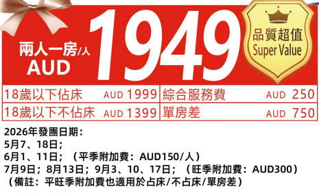 5.只限美國加拿大澳洲歐洲新加坡護照華人, 如需要其他地區或英文導遊, 另行報價