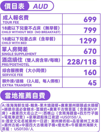 *已包含廣州-潮汕高鐵二等座票