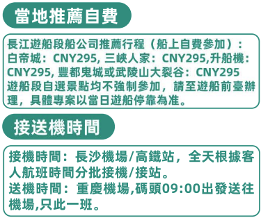重要提示:遊船段行程僅供參考,季節性調整或是氣候以及航道等因素的影響,每日行程可能會有所改變,具體行程以當日船公司安排行程為准,遊船公司保留對行程的最終解釋權.
