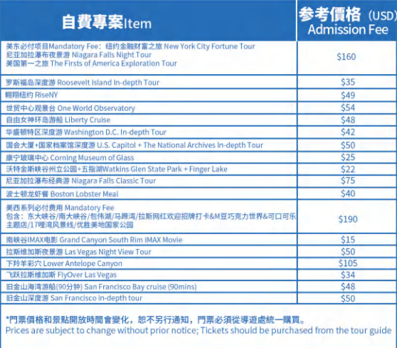 5.景點門票(必付項目和自費項目) MANDATORY AND OPTIONAL ADMISSION FEE