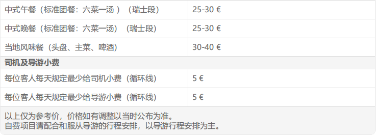 7、接送机路程超过30KM,需要收取额外费用,超出部分1.5欧/KM。(如接送酒店是我司大巴团预订的加住酒店,则超出30KM的部分无需支付额外费用)。