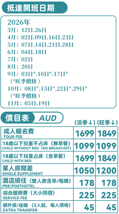 重要提示:遊船段行程僅供參考,季節性調整或是氣候以及航道等因素的影響,每日行程可能會有所改變,具體行程以當日船公司安排行程為准,遊船公司保留對行程的最終解釋權.